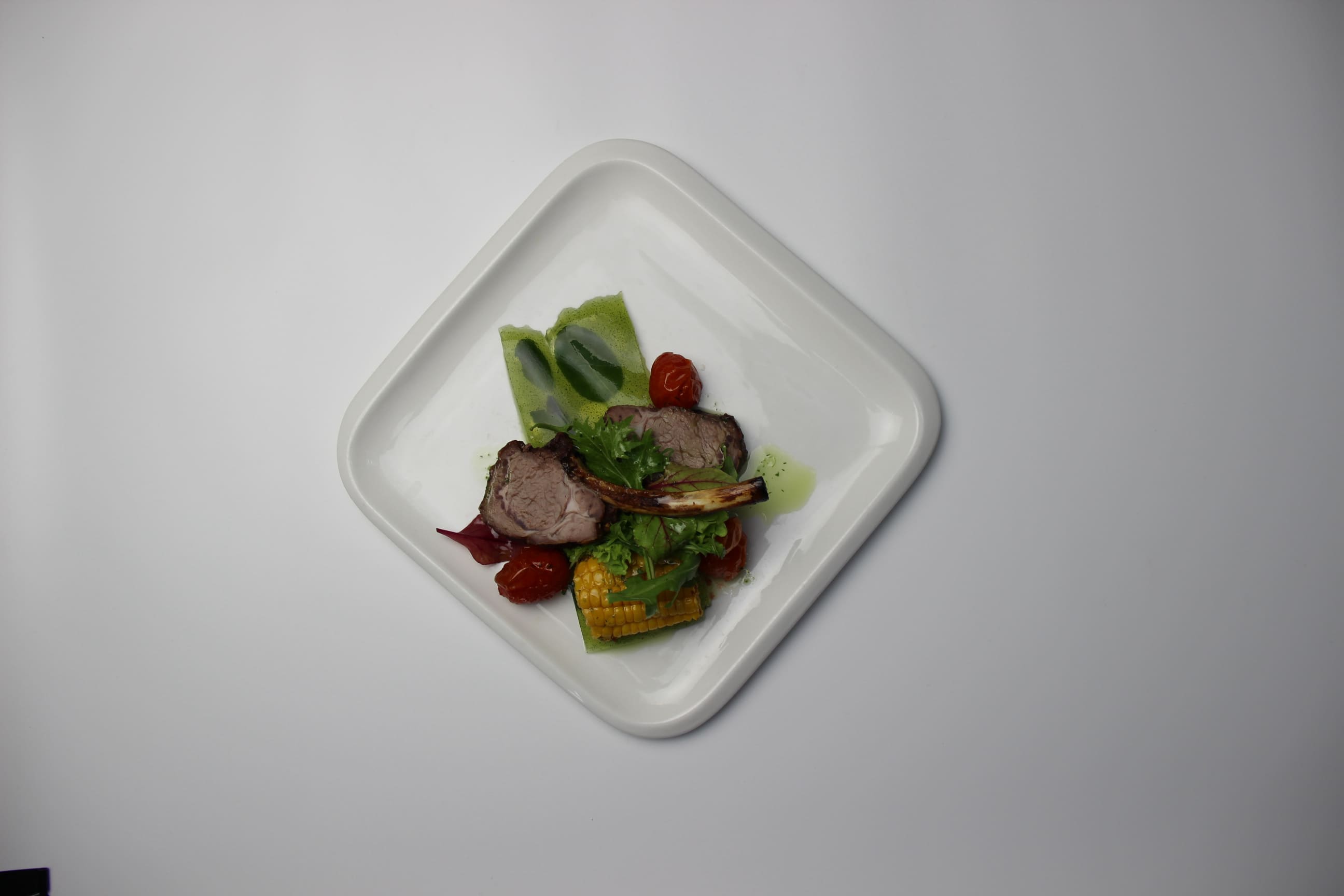 Каре ягнёнка с палентой и овощами